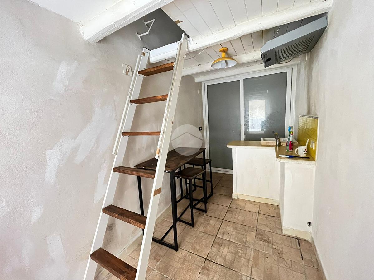 Composto da : ambiente living con cucina e tavolo, bagno con doccia e camera da letto soppalcata.